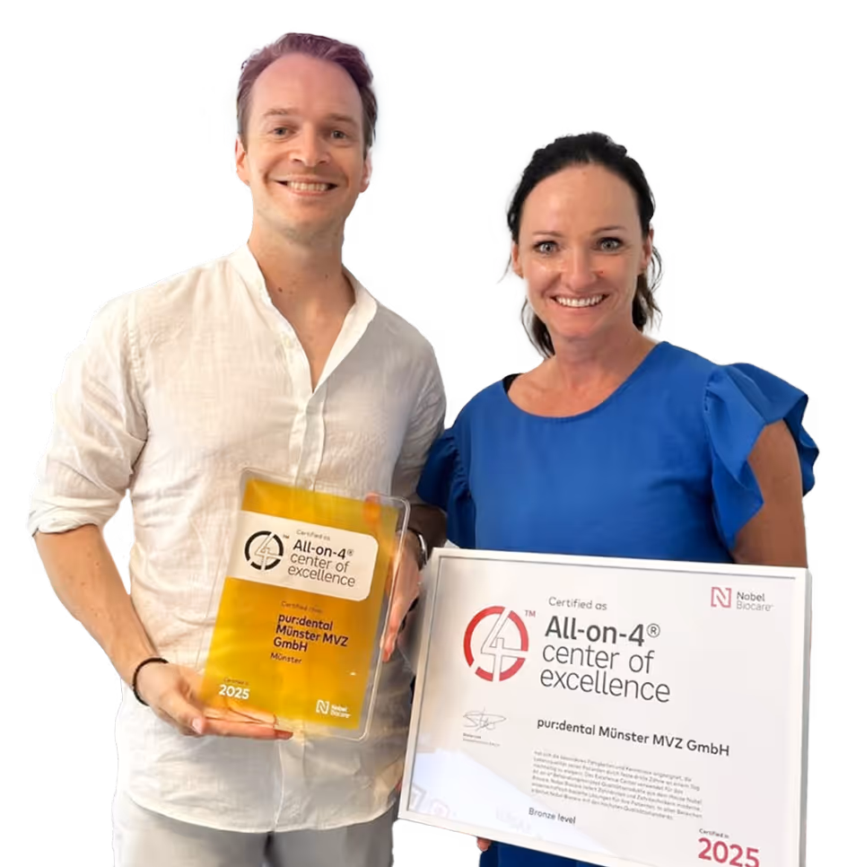 Am selben Tag bekommst du deinen Zahnersatz eingesetzt – feste Zähne, neues Lächeln und ein frischer Start in dein nächstes Kapitel.
